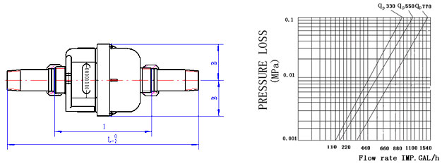 OVERALL DIMENSIONS    PRESSURE LOSS CURVE