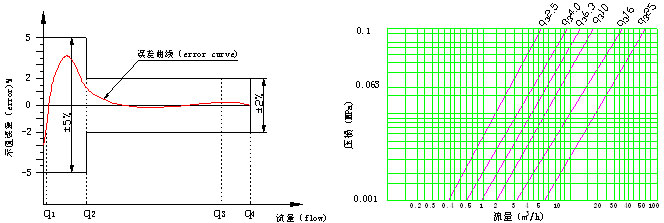 示(shì)值誤差限與流量曲線FLOW-ERROR CURVE 壓力損失曲線 Pressure loss curve